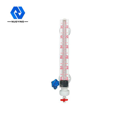 All'unione tra la sfera galleggiante che affonda nel liquido e la parte galleggiante è installato un acciaio a magnete permanente. Quando il livello del liquido nel contenitore misurato sale e scende, anche il galleggiante magnetico nel tubo del corpo dell'indicatore di livello sale e scende, e l'acciaio a magnete permanente nel galleggiante passa attraverso. L'accoppiamento magnetico viene trasmesso all'indicatore a colonna magnetica a bandierina, che aziona le colonne a bandierina rosse e bianche a ruotare di 180°. Quando il livello del liquido sale, la colonna a bandierina cambia da bianca a rossa, e quando il livello del liquido scende, la colonna a bandierina cambia da rossa a bianca. L'unione tra rosso e bianco è l'altezza effettiva del livello del liquido all'interno del contenitore, in modo da ottenere un'indicazione chiara del livello del liquido.![]()
